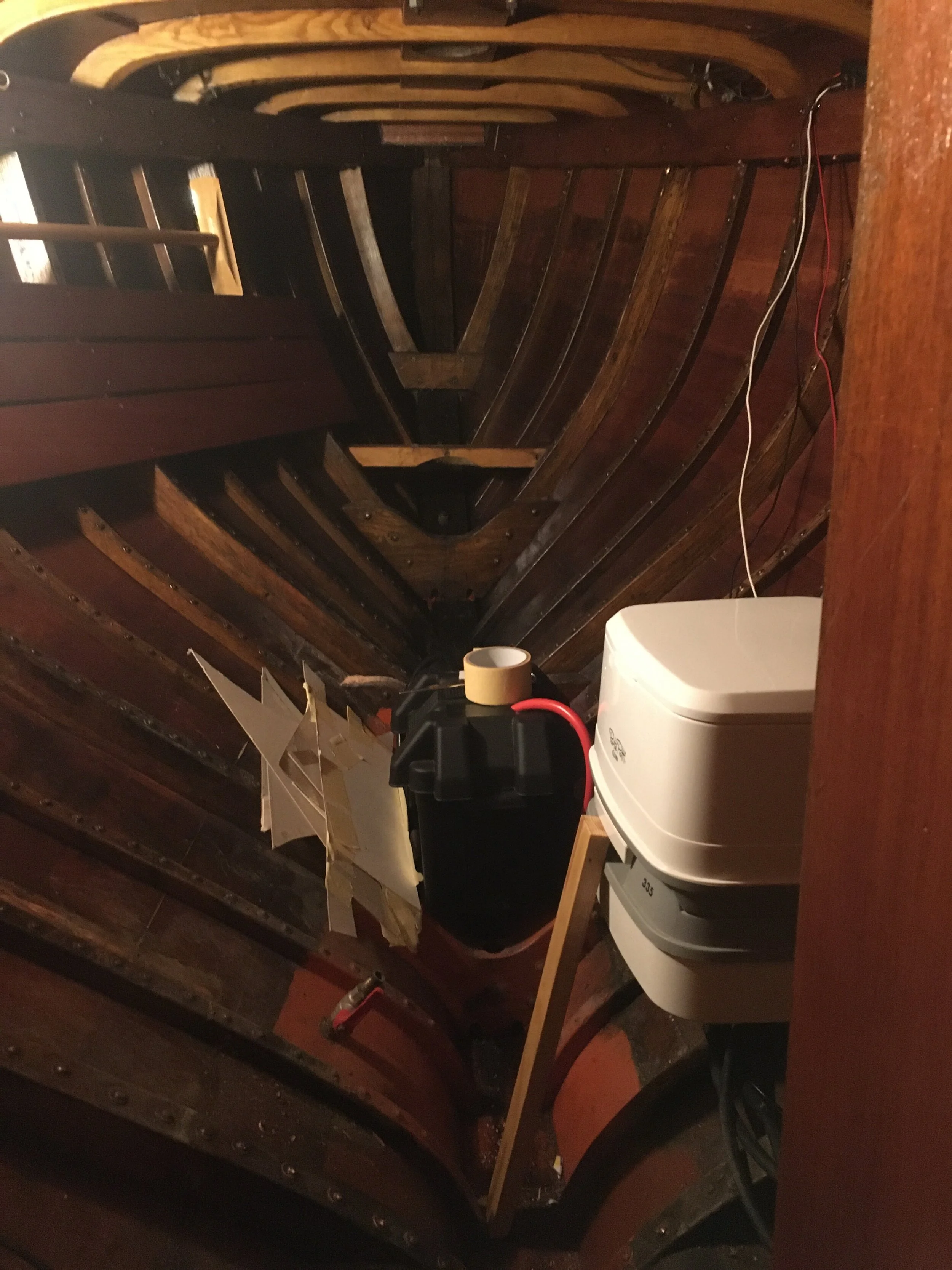 After small adjustments it fits nicely in this part of the bilge.