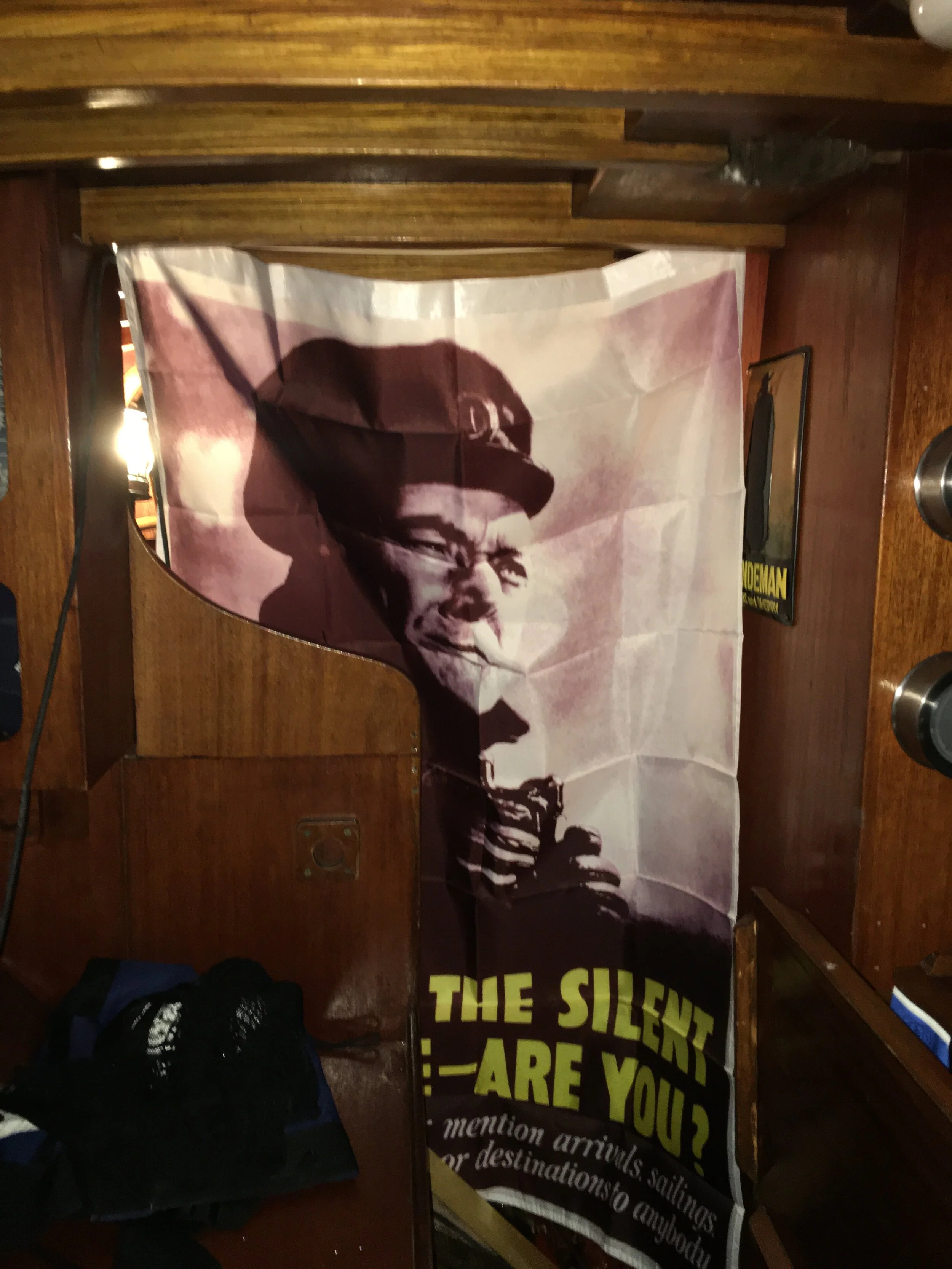 Privacy for this season will be given by custom curtain with WW2 motiv. I plan to make wooden sliding doors next winter but for now it will do with Silent Service Guy!