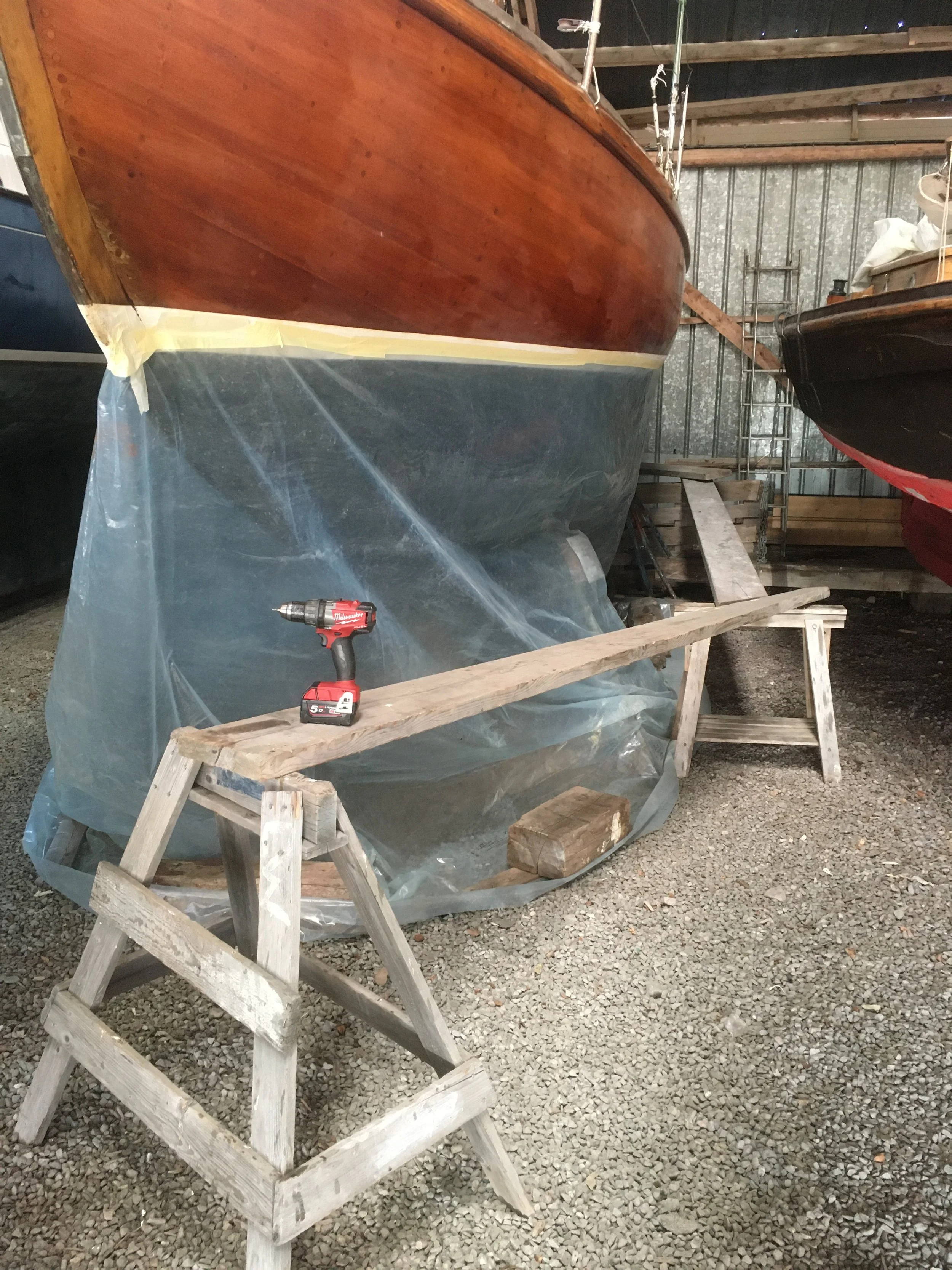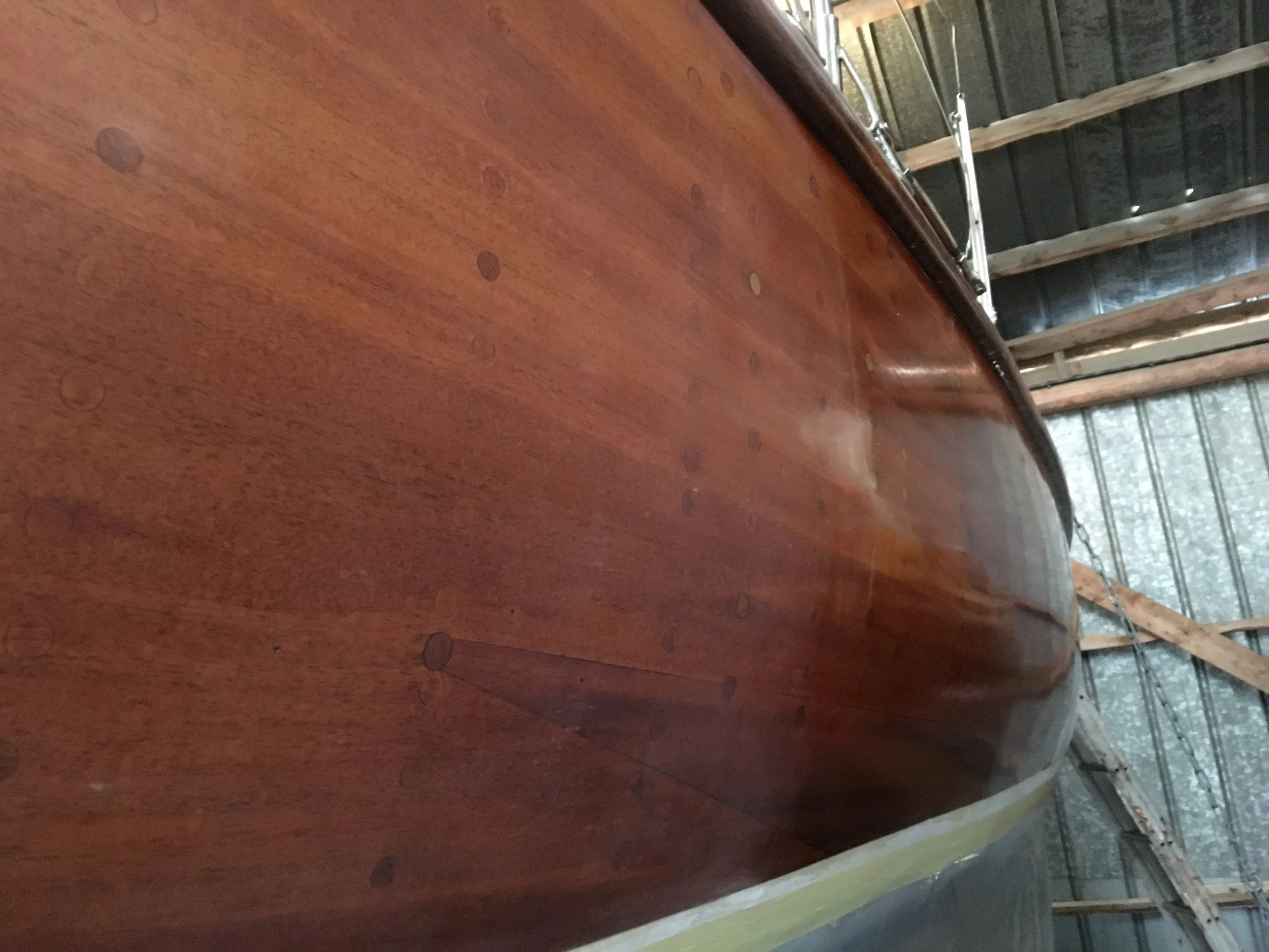 There was hardly anyone in the boat-hall, I was hoping that Jim will show up. A bit disappointed I finished abrading port side for varnish and headed home.