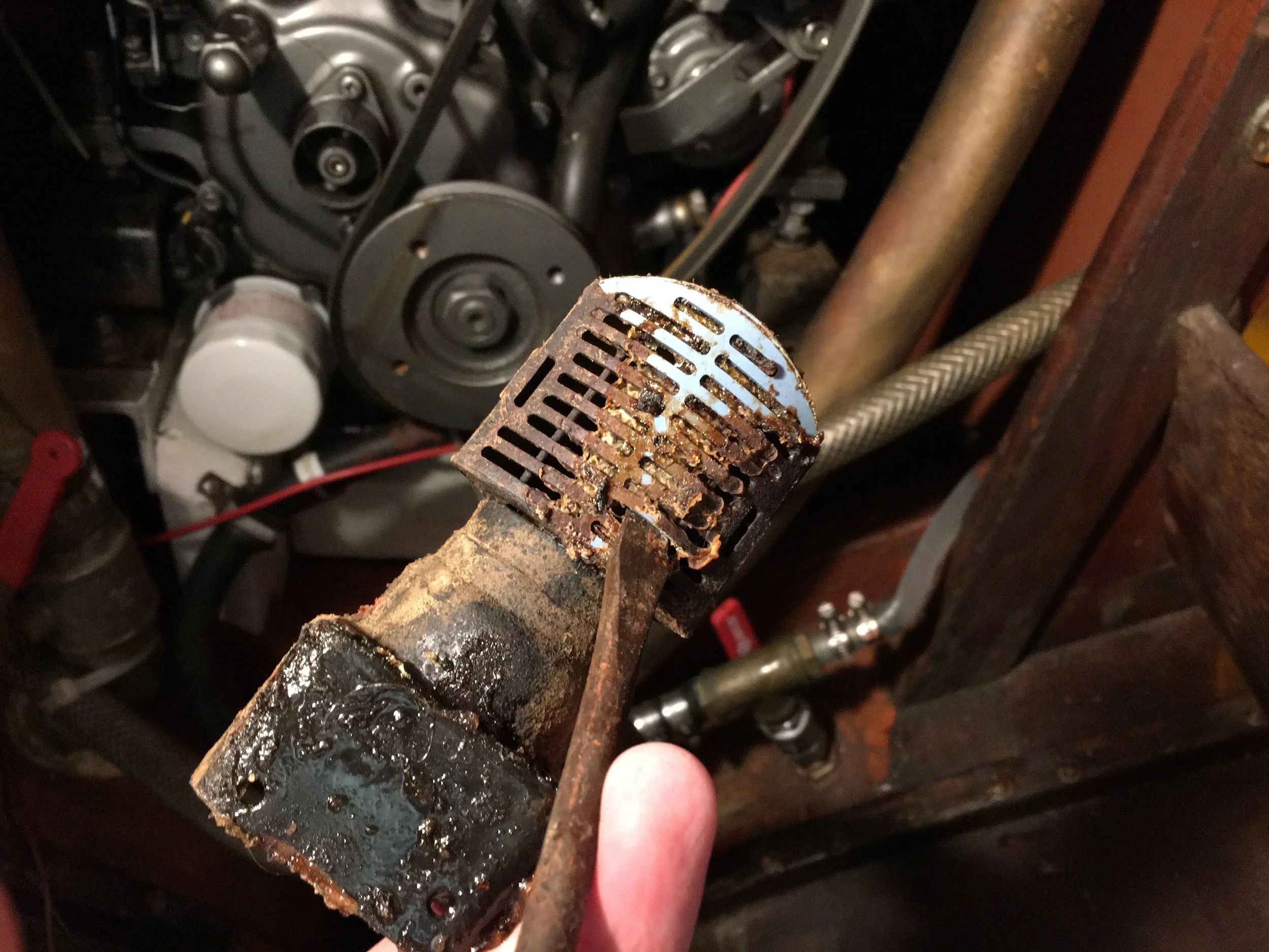 Sump sieve required attention: accumulated debris clogged it almost entirely.
