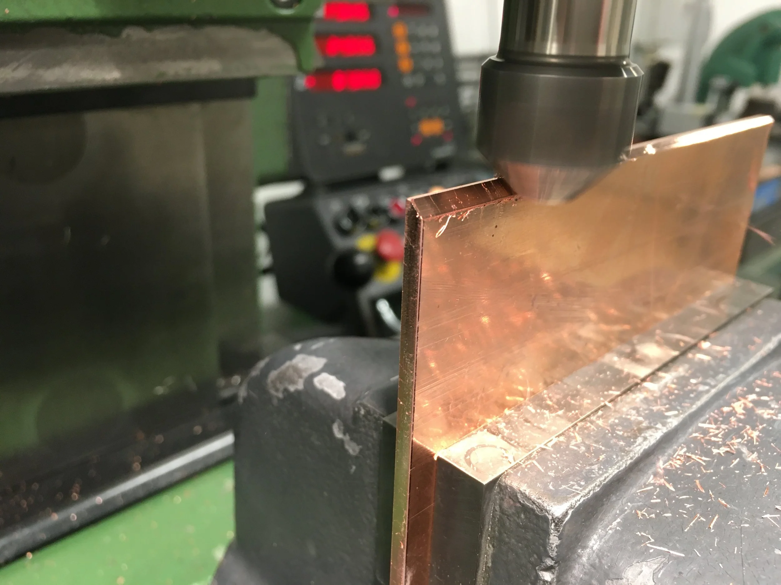 I cut these thick copper plates using jig saw so I needed to square them out on a proper machine. Adding chamfer on the top edge of each plate so that it will not keep any water.